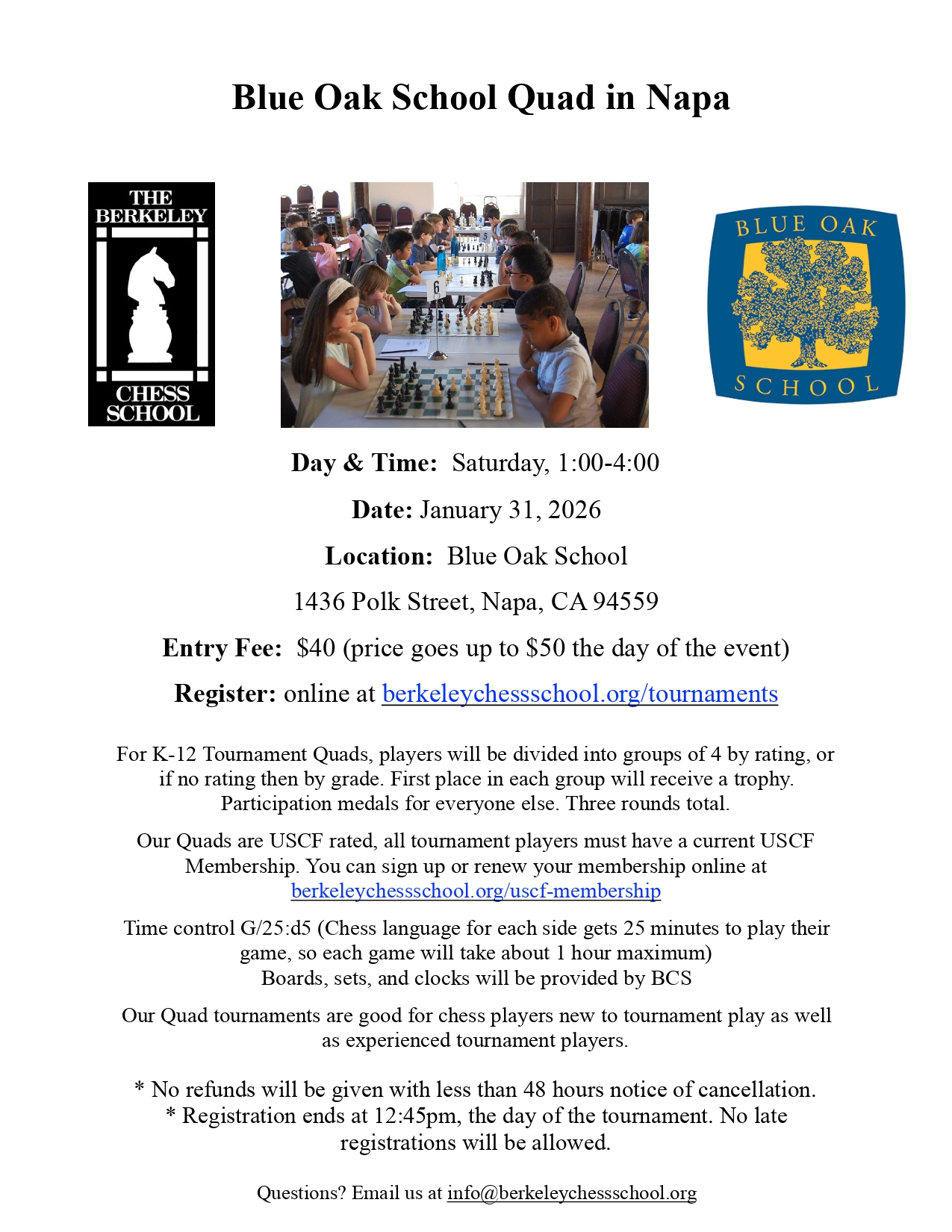Please contact The Berkeley Chess School if you have any questions.